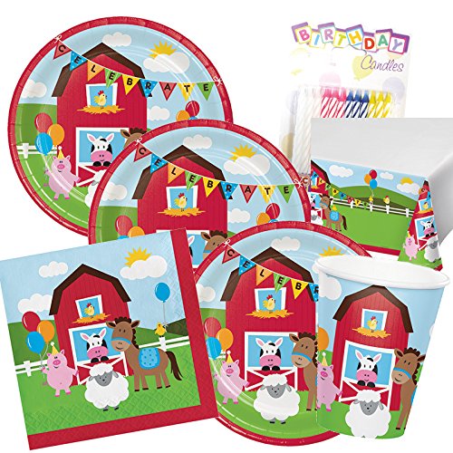 -. Title : Barnyard Animal Birthday Party Plates Napkins Cups Serves 16 With Table Cloth