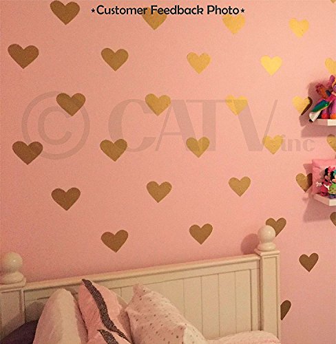 Hearts 4" Set of 39 wall pattern decal vinyl stickers (Gold)
