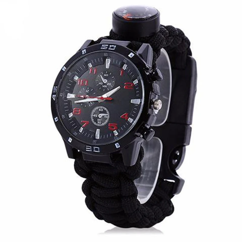 - 6 in 1 survival tool: bracelet watch, compass, whistle, thermometer, u0026nbsp;paracord rope Flintstones