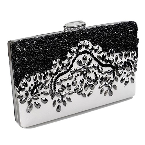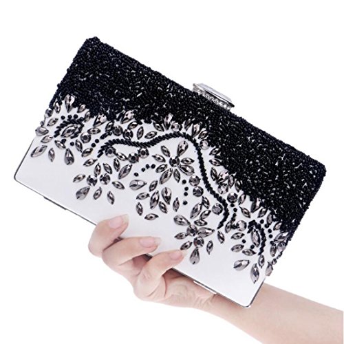 -. Title : EPLAZA Women Black Rhinestone Beaded Clutch Bags Bridal Wedding Crystal Handbags Purse