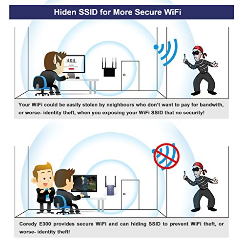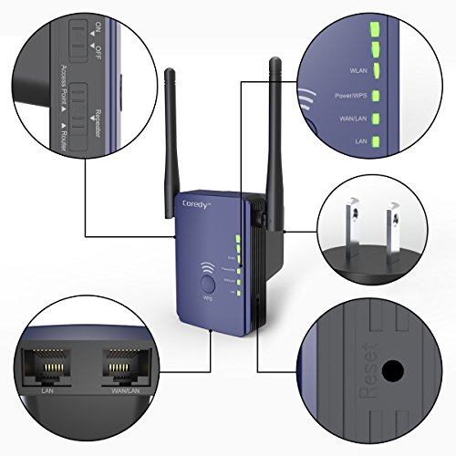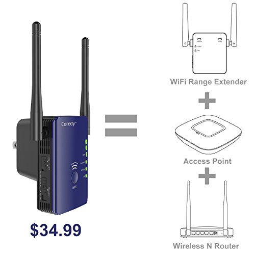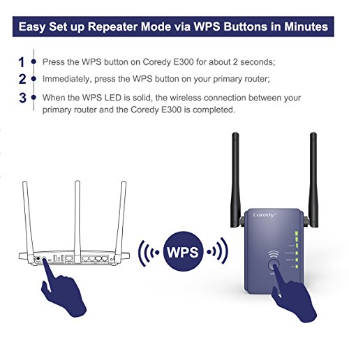 Turn WiFi Dead Zones Into WiFi Connected Corners!Coredy E300- another Coredy device designed for eliminating Wi-Fi dead zones! Small size with 2 x 3dBi external antennas for better performance and wider coverage, mode switch button and signal indicator lights for easier setup.Multiple functions: WiFi Range Extender(Repeater)- Extend WiFi coverage and improve the signal strength of existing wireless network.Wireless Access Point- Covert a wired network to a wireless network.Wireless N Router- Create an instant private wireless N network.Better Performance, Reliable Wireless N Network Speed up to 300Mbps Covering Your Entire Home!Adopt the Realtek chip solution for extra stability; 2 x 3dBi external antennas for stronger WiFi signal and wider coverage; reliable wireless N network speed up to 300 Mbps covering your entire home!Hidden SSID for More Secure WiFiHiding the broadcast WiFi SSID to make the SSID unsearchable and preventing WiFi theft- or worse, identity theft! Security Type : WEP, WPA PSK, WPA2 PSK, WPA /WPA2 PSK (Mixed); WPA / WPA2 Encryption: TKIP, AESEasy Set up in Minutes 1. Support WPS function, allows you set it up in minutes by simply press WPS button of Coredy E300 and your target router. 2. Can be wireless configured by iPhone/ iPad/ Kindle fire and all android smartphones/ tablets, or wired configured by laptops/ desktop computer. 3. Signal indicator helps to find the most accurate location to place the Coredy E300. 4. Comes with a Quick Installation Guide for Repeater mode and a detailed User Manual for all modes, easily and quickly configuring even for a beginner! 5. Coredy offering TELEPHONE TECH SUPPORT, if you need, Coredy support can teach configuring step by step! Warm Tip: Please timely download the latest firmware for upgrade device for the most convenient usage.Feature