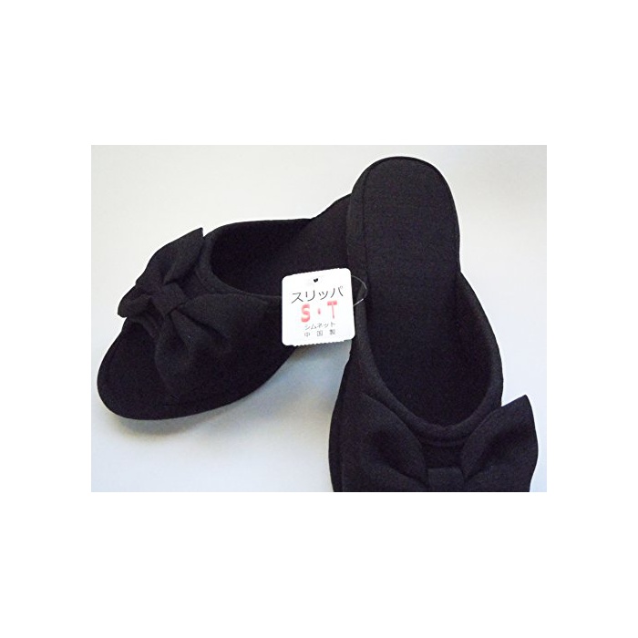 산퉁 소재에 산뜻한 멋진 리본 부착 heel 슬리퍼 블랙 멋장이는 발밑에서,수험 수업 참관 면담 학교 방문 등에,물론 평상시의 실내 신게