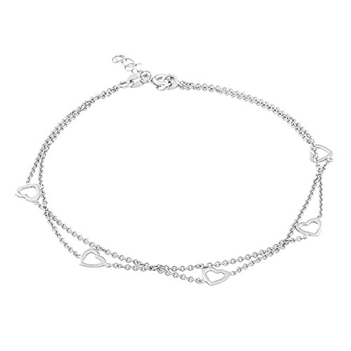 -. Title : Sterling Silver 9" + 1" Extension Multiple Hearts Double Strand Anklet
