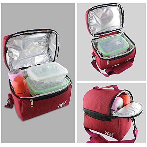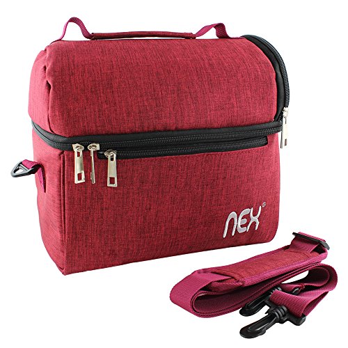 Nex Lunch Bag Fabric Double Decker Cooler Lunch Box Insulated Lunch Bag with Zip Closure (Red)