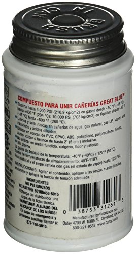 - Use on PVC, CPVC, ABS, polyethylene, polypropylene, iron, steel, copper or brass threads up to and including 2"".