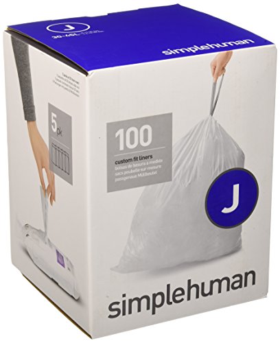 simplehuman Code J Custom Fit Liners, Tall Kitchen Drawstring Trash Bags, 30-45 Liter / 8-12 Gallon, 100-Count Box