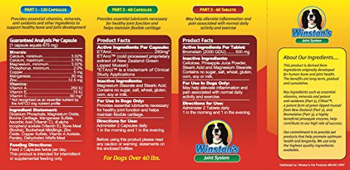 -. Binding : Misc. -. Brand : Winston's -. Color : Red Box -. EAN : 0689076105545 -. Feature : Relieves symp of canine hip dysplasia / Relieves symp of arthritis and pain / Greatly reduces stiffness and Inflammation / We have helped over 20,000 dogs since 1990 / Made in the U.S.A - Completely drug free -. Label : Winston's -. Manufacturer : Winston's -. Model : WJS35-99 -. MPN : WJS35-99 -. PackageQuantity : 1 -. PartNumber : WJS35-99 -. ProductGroup : Pet Products -. ProductTypeName : PET_SUPPLIES -. Publisher : Winston's -. Size : Medium -. Studio : Winston's -. Title : Winston's Joint System - For Medium Dogs from 35-99 Pounds - 100% Natural Whole Food Supplement System for Canine Arthritis, Hip Dysplasia and Joint + Pain Relief - One Month Supply (35-99 Lbs) -. UPC : 689076105545