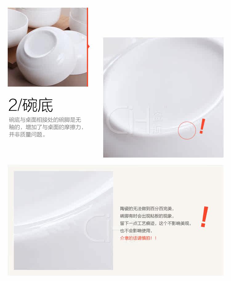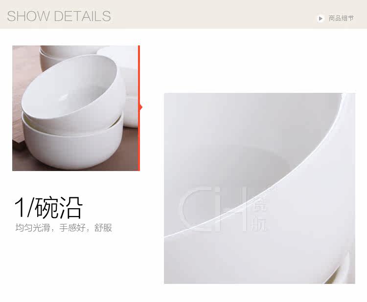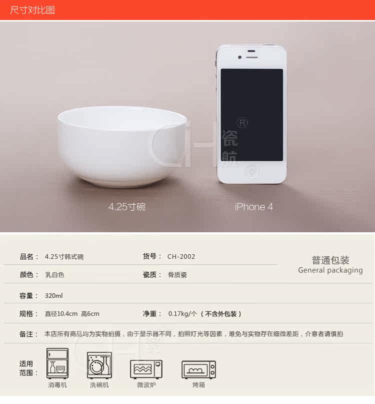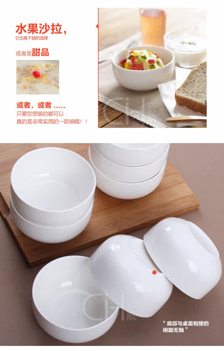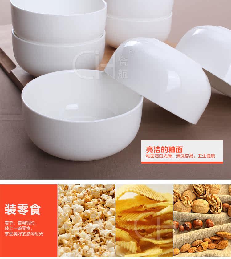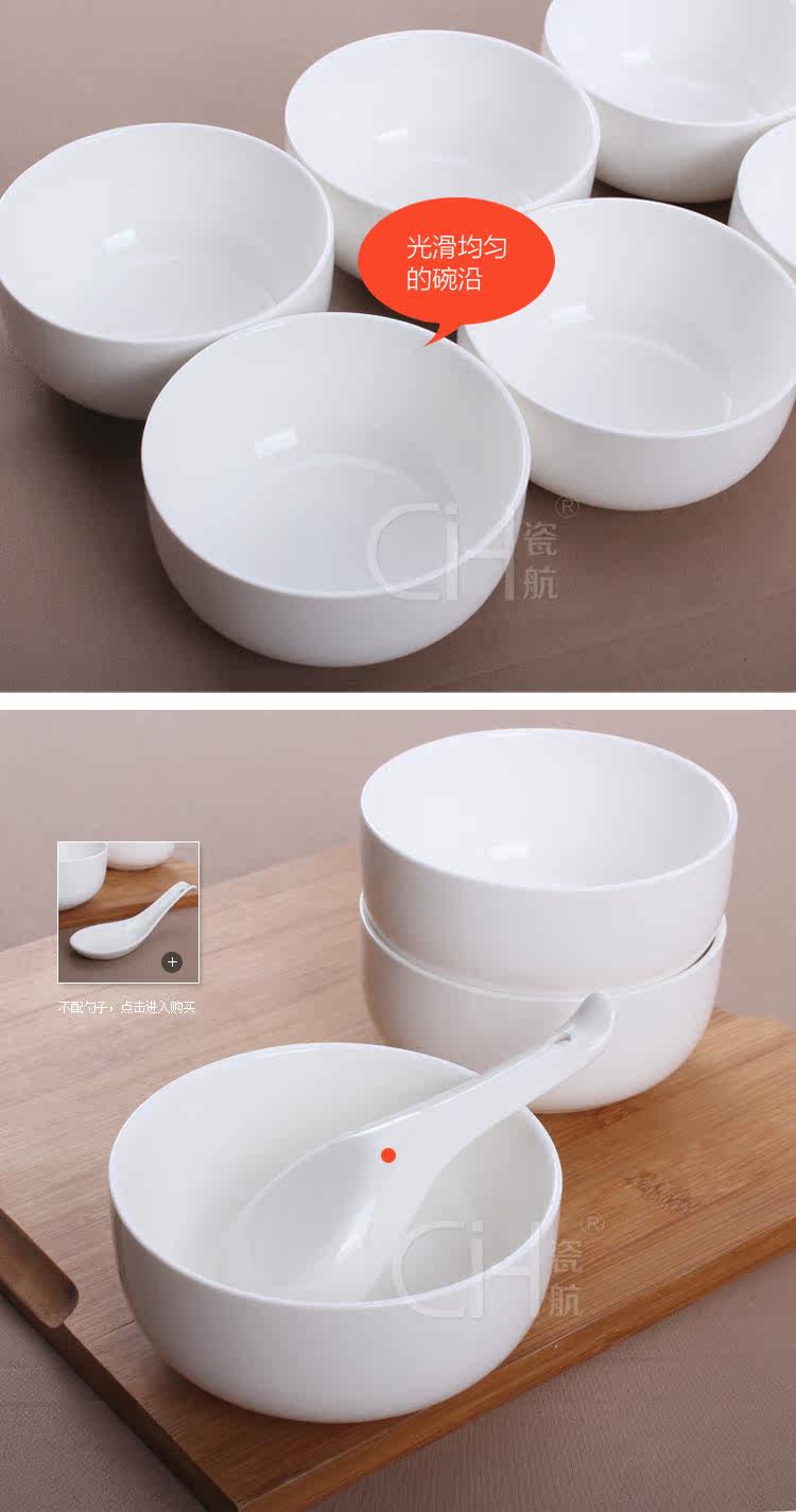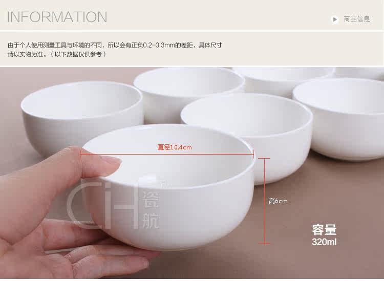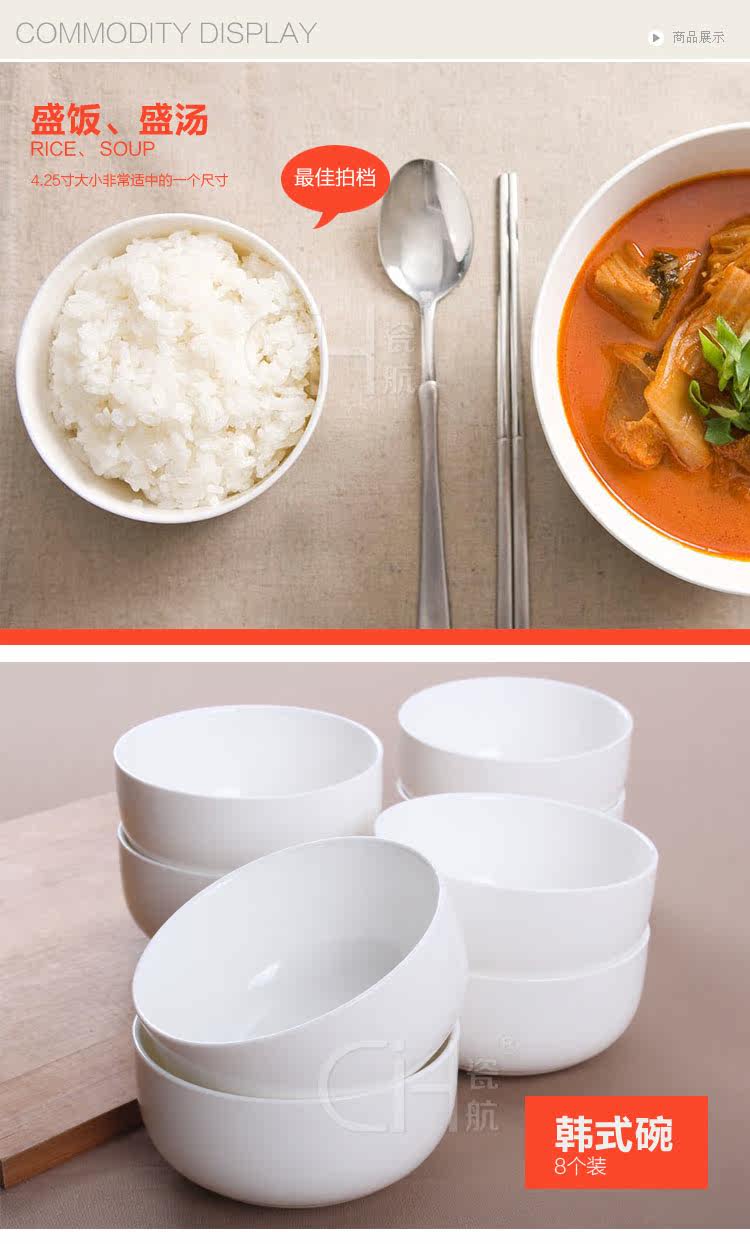 瓷航4.25英寸韩式碗8个装饭碗汤碗陶瓷碗餐具纯白水果碗 320ml