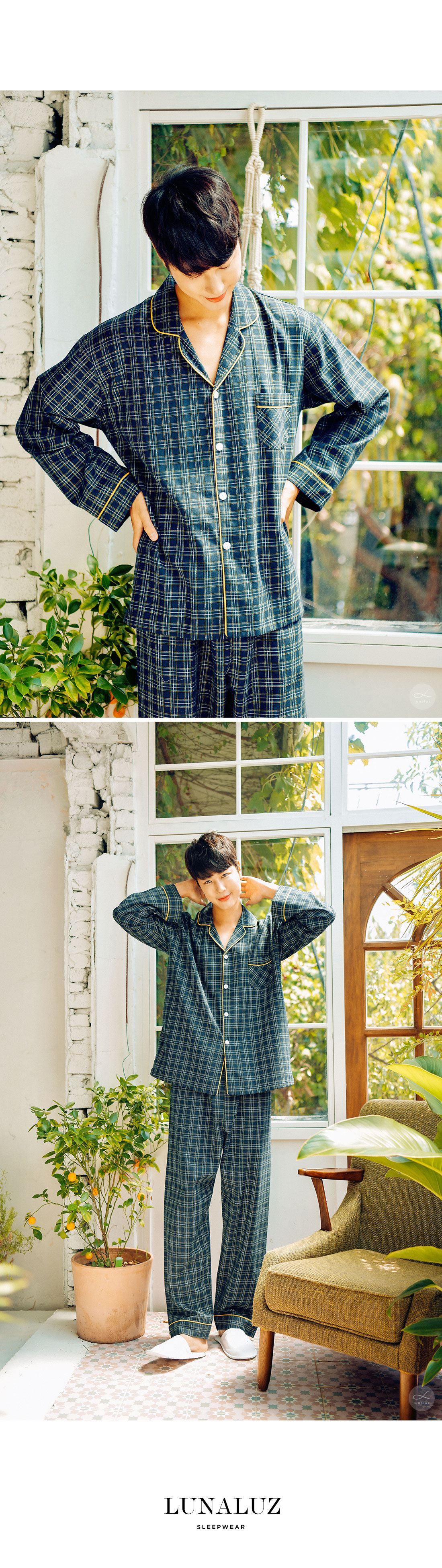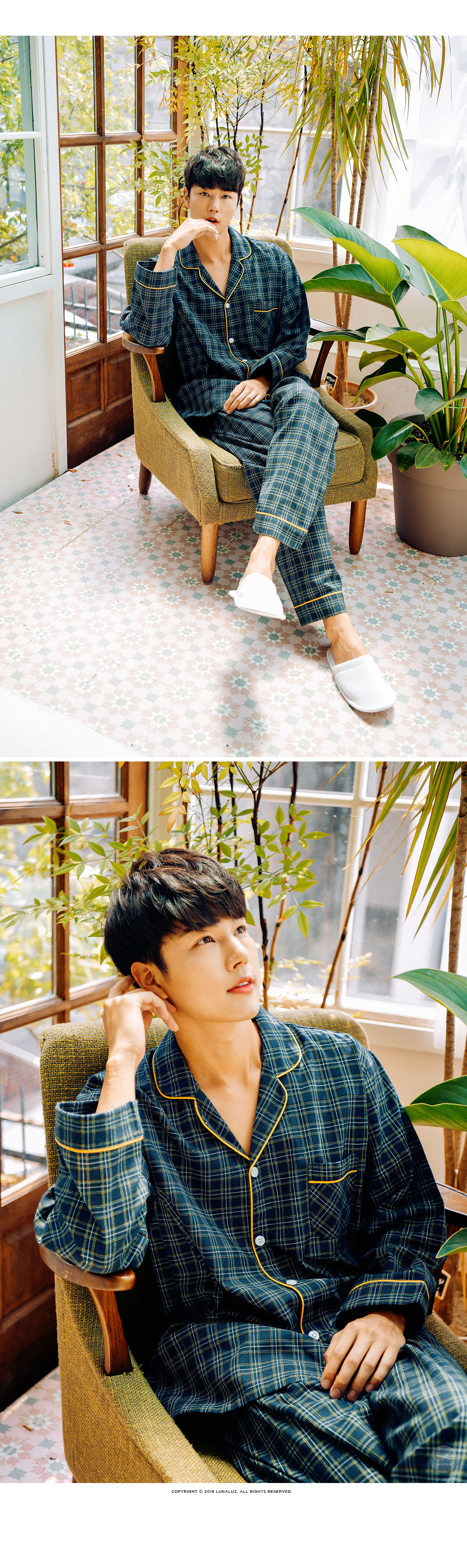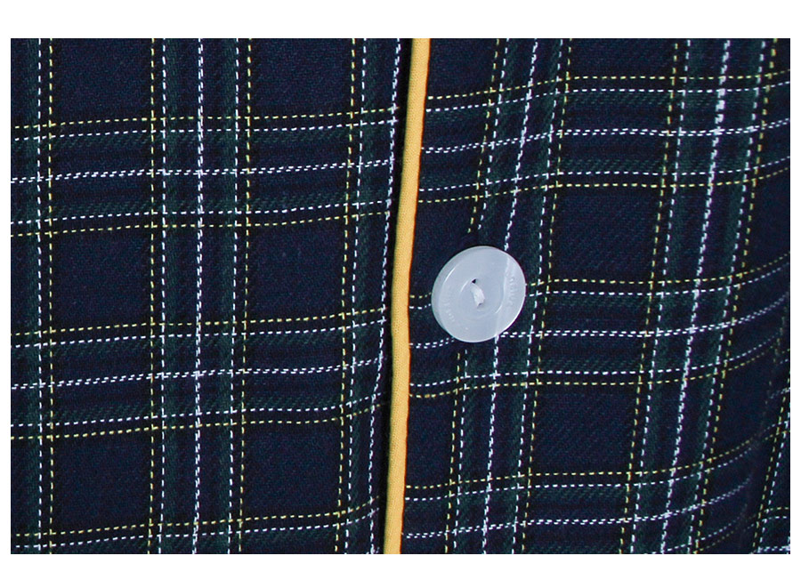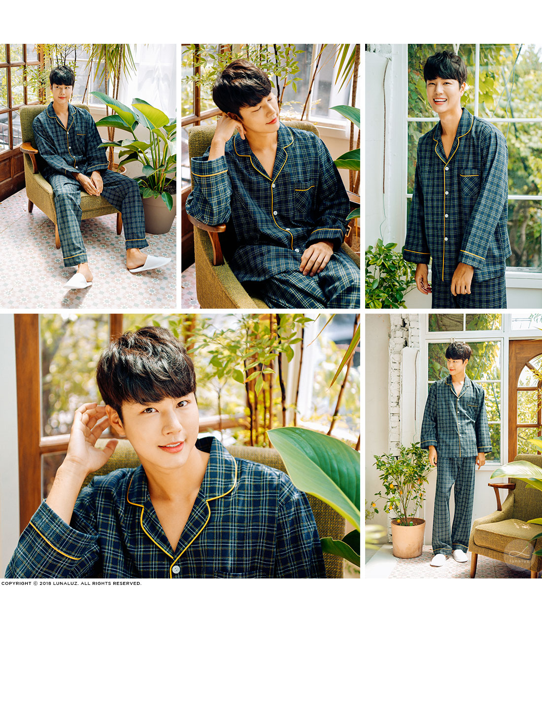 고급스러운 딥한 그린 컬러의 체크 파자마 세트 에요. 톤 다운 된 컬러감으로 한 층 더 세련된 무드를 느끼실 수 있습니다. 전 연령 두루두루 잘 어울릴 스타일의 깔끔한 파자마 세트로 적극 추천해드려요. 직접 실을 염색해 짠 선염면 조직의 파자마 세트로 탄탄하고 훨씬 고급스럽습니다. 흐트러짐 없는 조직감으로 오래 꺼내 입을 수 있는 fw파자마 세트랍니다. DETAIL 깔끔한 포켓 카라 스타일의 디자인으로 질리지 않고 계속해서 꺼내 입을 수 있는 파자마세트 입니다. 네츄럴한 핏으로 편안하게 연출하기 좋습니다. 카라의 끝 부분부터 클로징 버튼까지 옐로 컬러의 파이핑을 봉제 해 화사하게 포인트를 주었습니다. 소매 부분과 팬츠의 하단에도 파이핑을 둘러주었습니다. 100% 국내 제작으로 소재, 디자인, 봉제의 퀄리티가 높습니다. SIZE 100size에게 적합한 free 사이즈입니다.