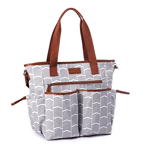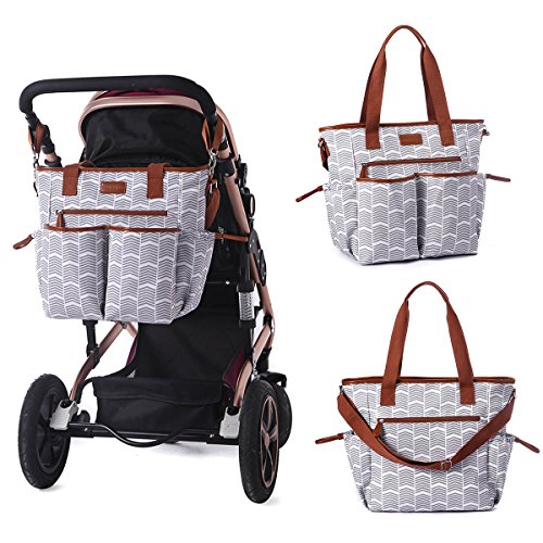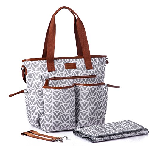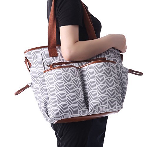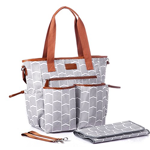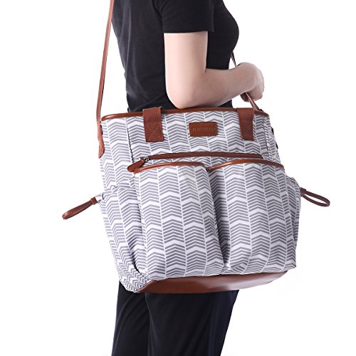 Studio : Comforkoo Publisher : Comforkoo Binding : Baby Product Product Description Color:Grey and White Brand:Comforkoo Dimensions:23 x 14.5 x 7.8 inches. Material: Polyester Multifunction:It is used as Shoulder bag, tote bag, and fits stroller; It is used for travel, excursion, going out, window shopping, etc. So convenient for taking care your baby! Features: Polyester, eco-friendly materials Refined design, classical and elegant, fits women Waterproof and durable, easy to wipe clean . Include two side tissue pocket, Two front pockets for clothes or towel,A pocket with zipper for keys. In the inner side of main compartment, include four normal Milk bottle pockets; A laptop compartment for keeping baby Literacy tablet and accessories. The huge roomy main compartment for baby's clothes, shoes, Milk powder cans, etc. Main compartment x 1 Milk pocket x 4 Tissue pocket x2 Diaper pocket x1 Front pocket x 3 Back pocket x 1 Changing pad × 1 Stroller strap × 2 Shoulder strap × 1