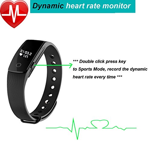 -. Feature : Feature: Heart rate monitor,Time, Pedometer, distance monitor, Calorie monitor, Alarm clock, finding phone, sleep monitor, camera remote capture. Vibration remind: clock alarm, sedentary, calling name display notification, Facebook/SMS synchronous notification. / Heart rate monitor: static and dynamic 2 kinds models. Calculate heart rate accurately by PPG sensor. Vibration remind: clock alarm, sedentary, calling name display notification, Facebook/SMS synchronous notification. / Compatible with :Android Phone 4.4 or later: Samsung Galaxy S6 S5 S6 Edge S7 S7 Edge S5, S4, S3. Note 4 3, Nexus 5X 6P, Oneplus One Two, HTC M8 M9, Sony Xperia Z4 Compact Z5 Z5 Compact etc.IOS 7.1 or later: iPhone 5 5s 5c 6 6s 6 Plus 6s Plus ect. / High sensitive touch key and press key operation.Gesture control, turn the wrist lit screen.Waterproof IP67 ,not afraid of washing hands/ doing housework/ walking under rain(But please don't wear it to swim).Before using the wristband please download the APP on your smartphone according instructions . / Information :0.49inch OLED display ;TPU Wristband material :3 axis G-sensor Acceleration; Charge by clip charger; lithium-ion polymer rechargeable battery; 6-10 days standby time ;22g net weight.