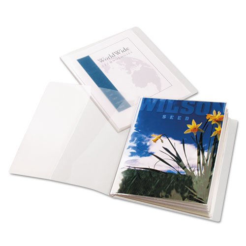 - Clear, sheet protector-style pages are permanently bound in book