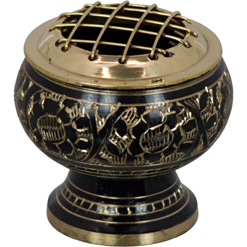 The New Age Source Brass Incense Burner with Grid Engraved Flowers Bl