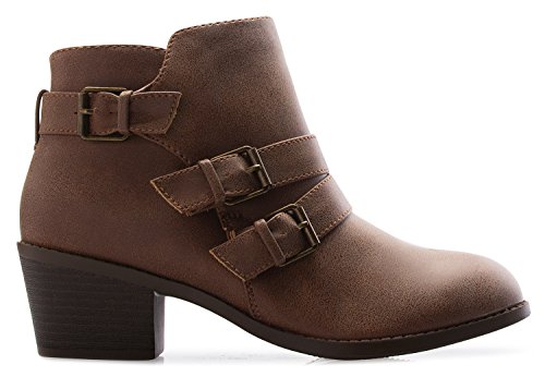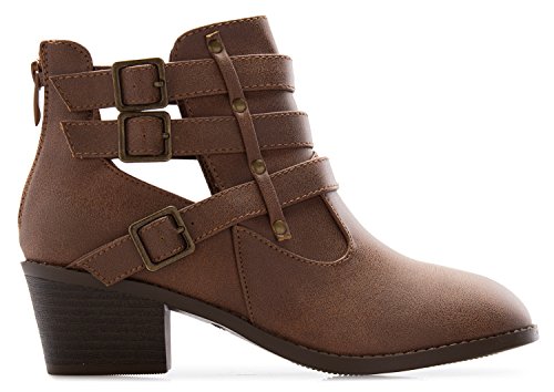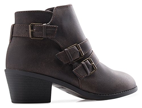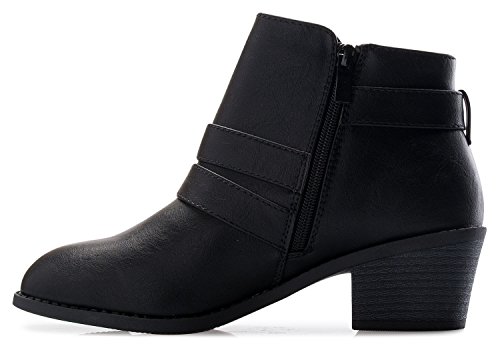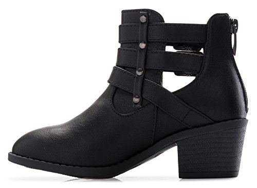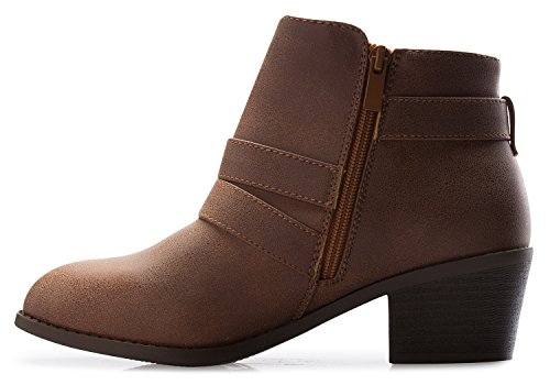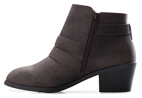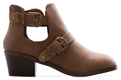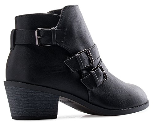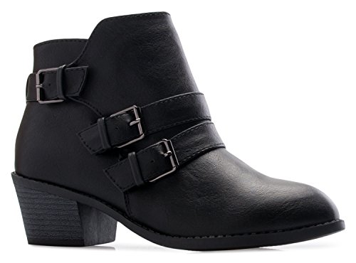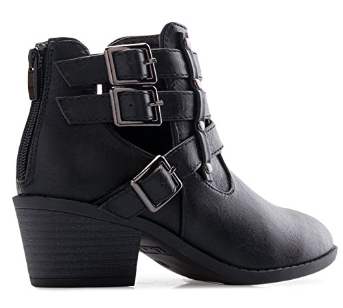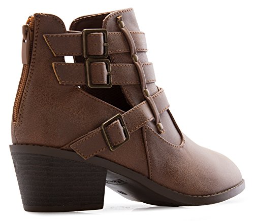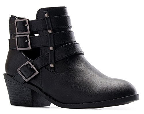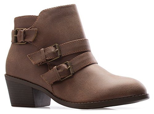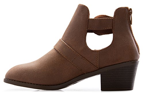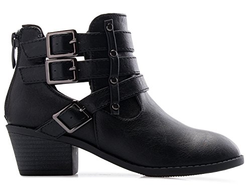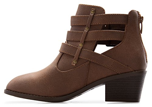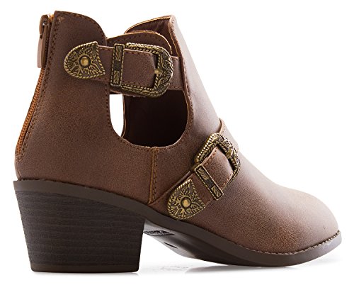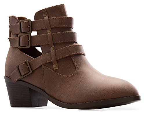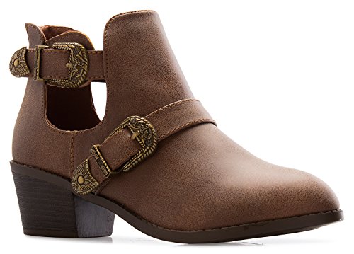 OLIVIA K Women's Western Buckle Stacked Low Heel Ankle Bootie Cut out Style