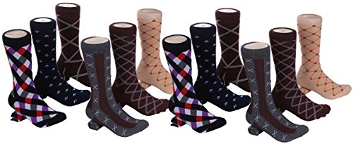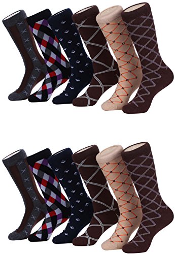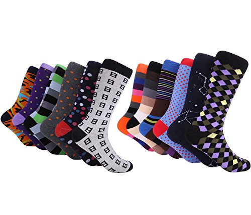 Marino Men's Fun Dress Socks - Colorful Funky Socks for Men - Cotton Fashion Patterned Socks - 12 Pack - Fun Collection - 10 - 13