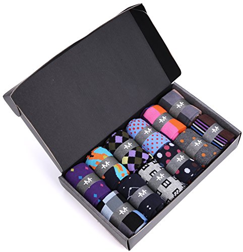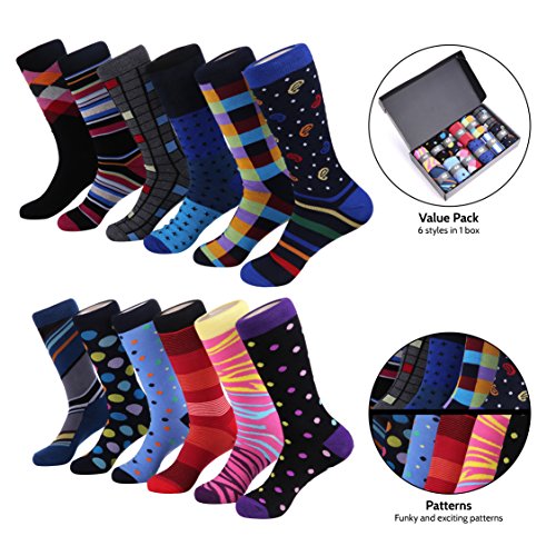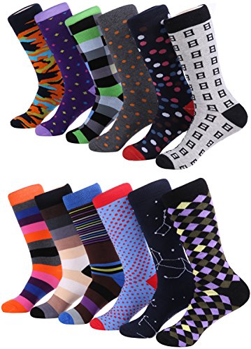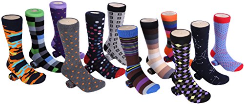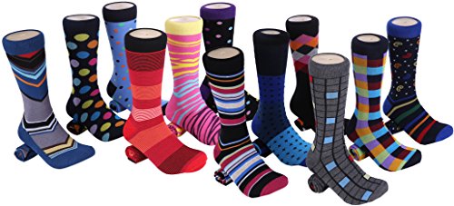 Marino Men's Fun Dress Socks - Colorful Funky Socks for Men - Cotton Fashion Patterned Socks - 12 Pack - Cool Collection - 13 - 15