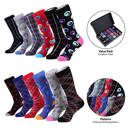 Marino Men's Fun Dress Socks - Colorful Funky Socks for Men - Cotton Fashion Patterned Socks - 12 Pack - Fun Collection - 13 - 15
