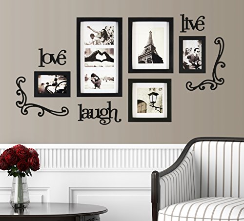 -. Feature : The set contains: 2-4x6, 1-7x7matted for 5x5, 1-8x10matted for 5x7and 1-81/2x15collage Frame Matted for 3-4x6with 2 scroll design wall hangings, 3 word wall hangings (live, love, laugh) / 3 frames come with acid free mat / All painted in Black / Great for creating your own wall decor