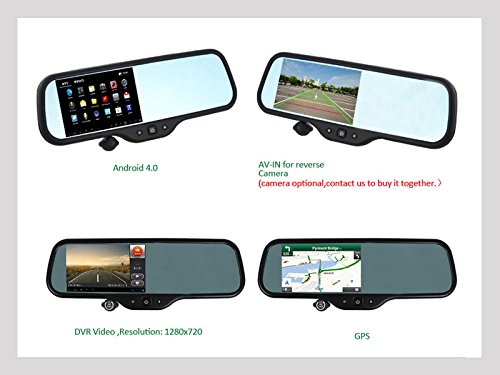 -. Feature : dual camera 1080p android DVR / Rearview mirror car DVR / wifi GPS av-in FM DVR / 5 inch android dvr / 8G memory DDR512MB