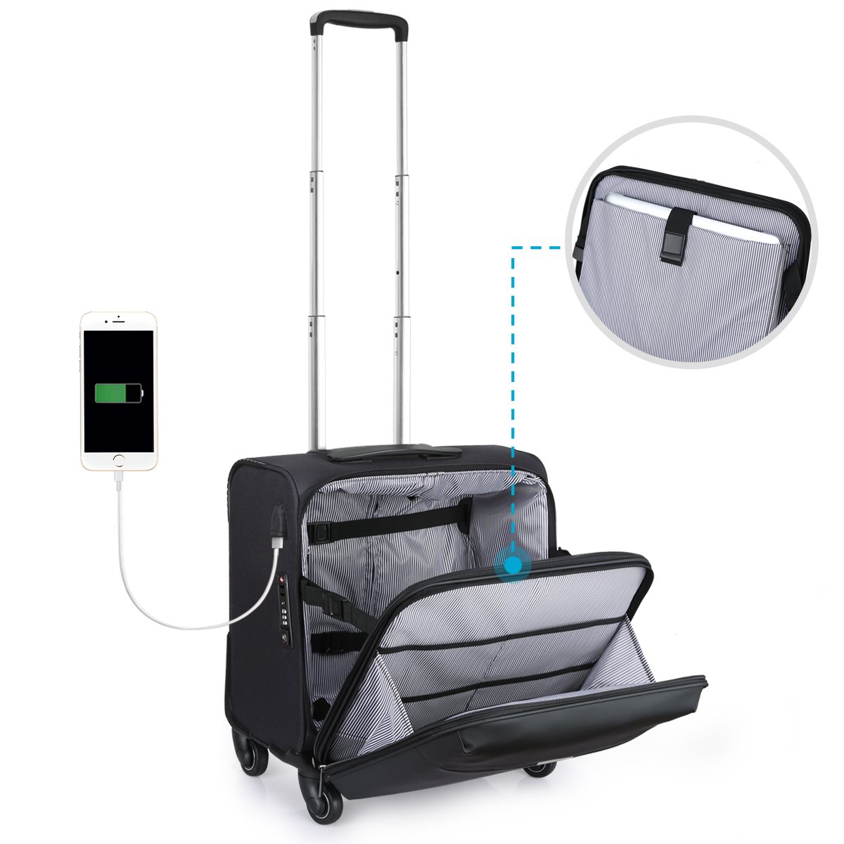 Specifications: 360 ° caster + TSA lock mounted