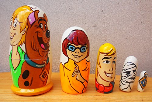 -. Title : "Scooby-Doo" Russian nesting Doll Set of 5 piece. Hand-painted in Russia.