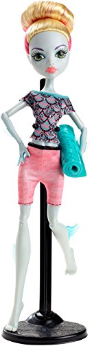 For the Monster High ghouls, exercise does not mean running around scaring up frights -- Physical Deaducation has taught them so much more! Venus McFlytrap, Catrine DeMew and Lagoona Blue dolls take their fitness seriously and have the accessories needed to really get a monster workout in. Lagoona Blue doll, daughter of the Sea Monster, makes waves in the yoga studio with a yoga mat in her favorite sea green. It matches her scary cool outfit with pink shorts and a colorful top with sea-inspired print in pink, black and sea green. A big bun will let her stretch her sea legs in class for a killer workout. Collect all three Monster High fitness dolls for a full workout and monster play and display. Includes Lagoona Blue doll wearing fashion, plus yoga mat. Doll cannot stand alone. Colors and decorations may vary.Feature