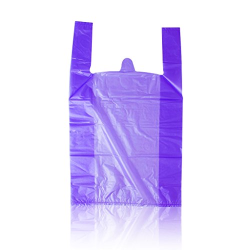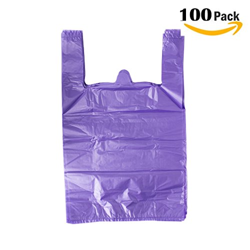LazyMe 12 x 20 inch Plastic Thick Purple T Shirt Bags, Handle Shopping Bags, Multi-Use Large Size Merchandise Bags, Purple Plain Grocery Bags, Durable (100, Purple)