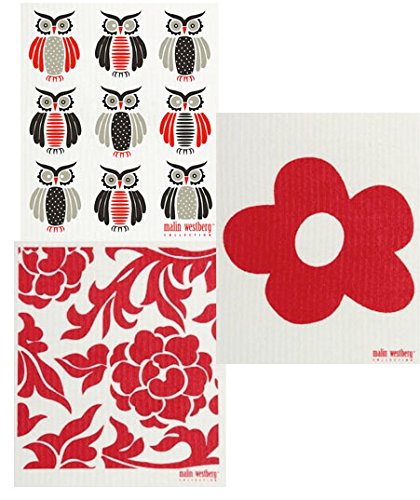 Swedish Dishcloth, Set of 3 Red, Black & Grey (FP)