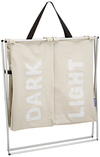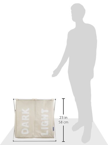 -. Feature : With two compartments for pre-sorting light and dark laundry, for example / With handles for easy transport to the washing machine and mesh cover with drawstring closure / Made of durable polyester with strong aluminum frame / Capacity: 2 x 15.85 gal (60 litres) / Dimensions (W x H x D): 23.23 x 22.44 x 14.96 in