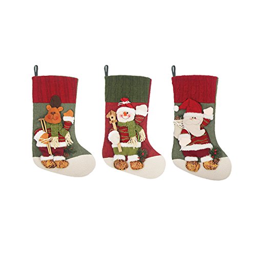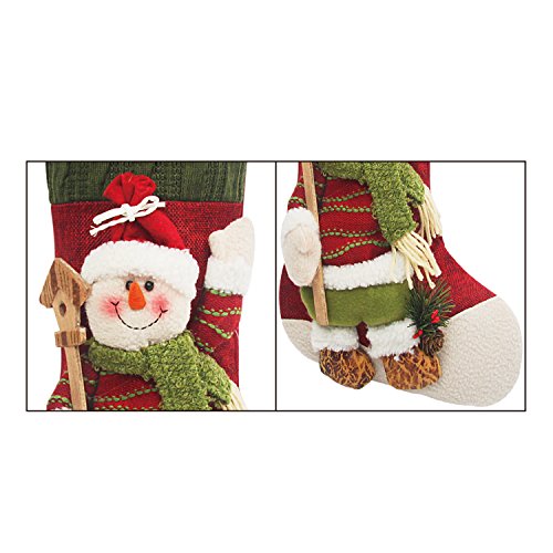 Vihir 3 Pcs Family Christmas Stockings with 3D Felt Santa, Snowman, Reindeer