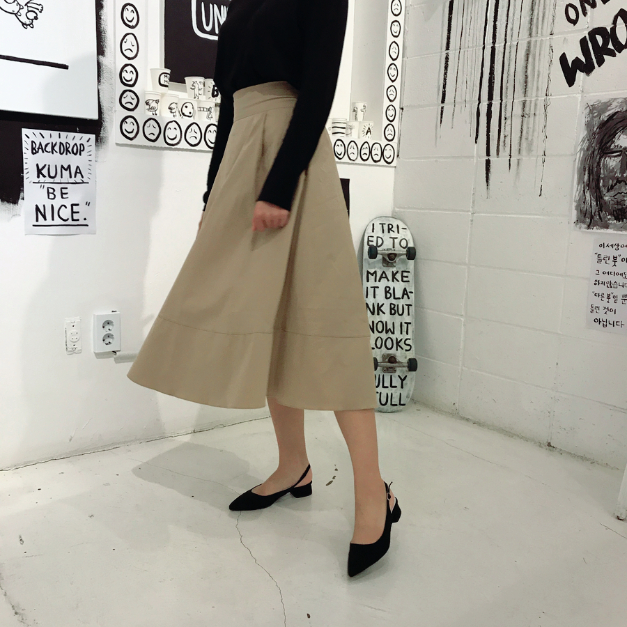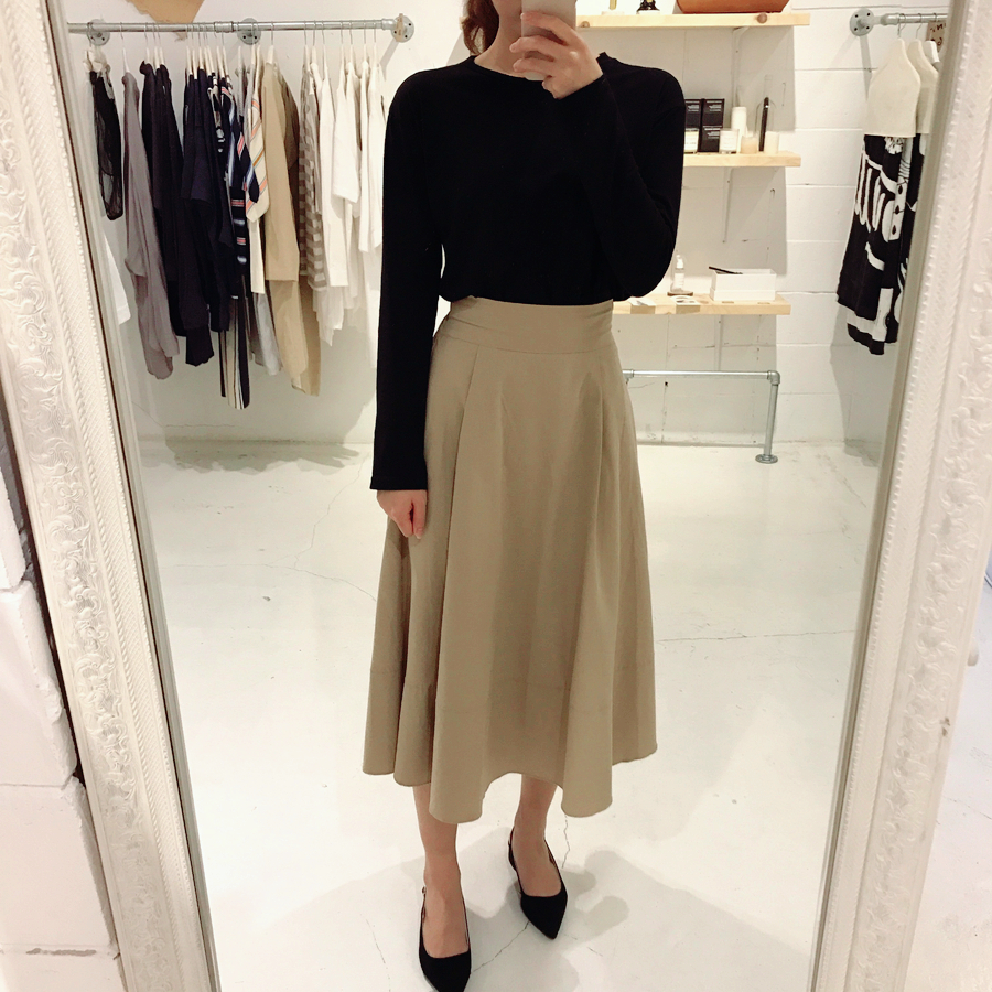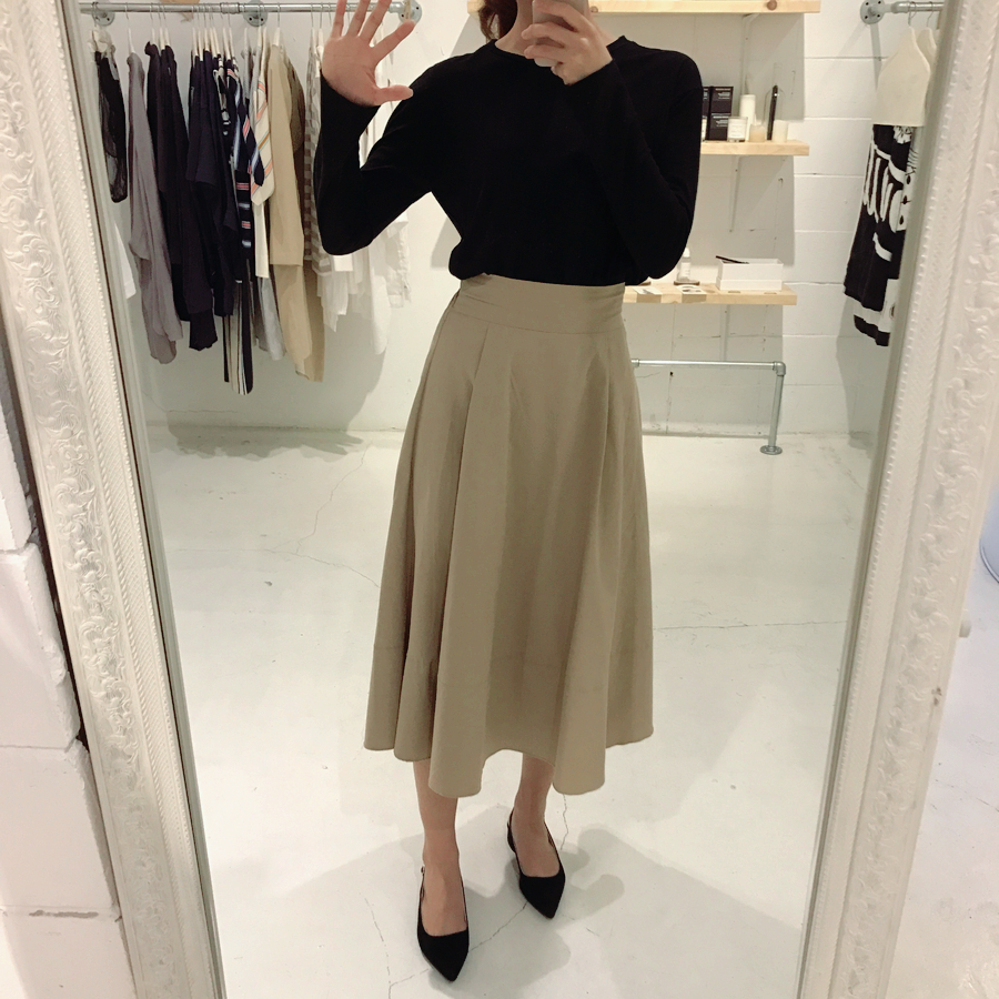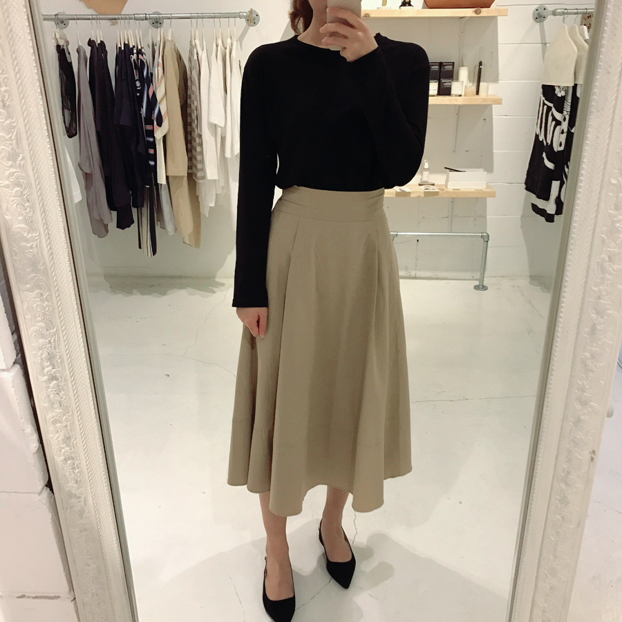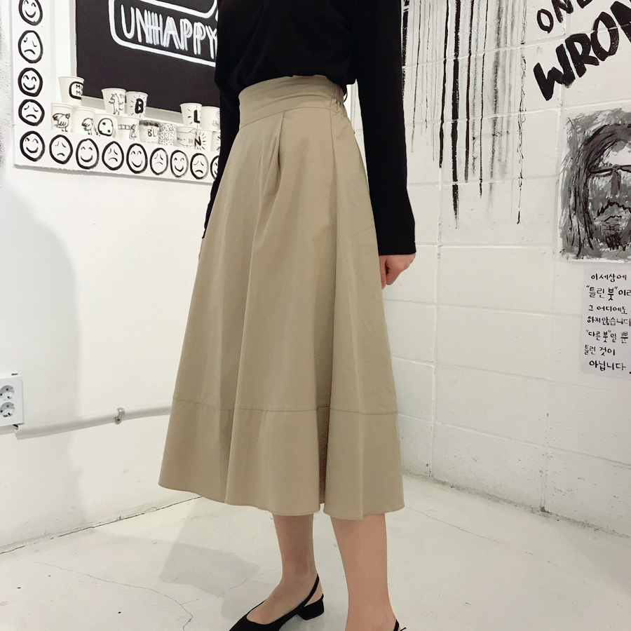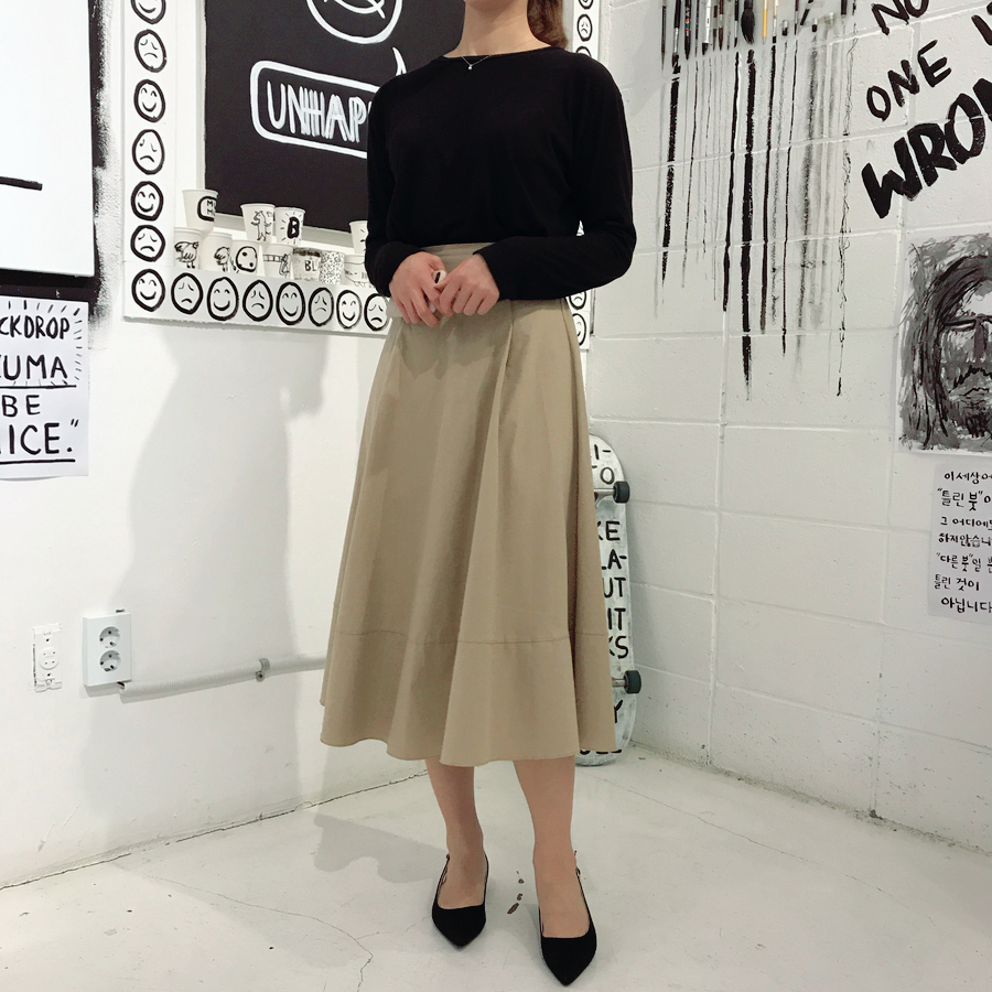Skirt, long flare natural look Parisian look minimalist classic style beige autumn