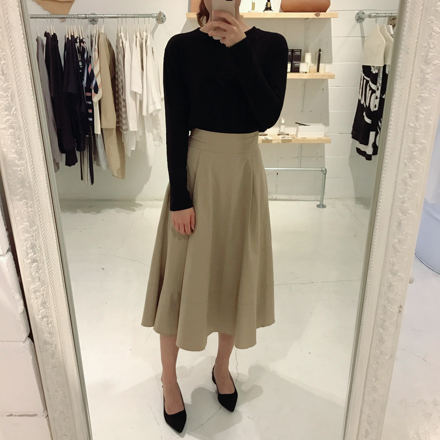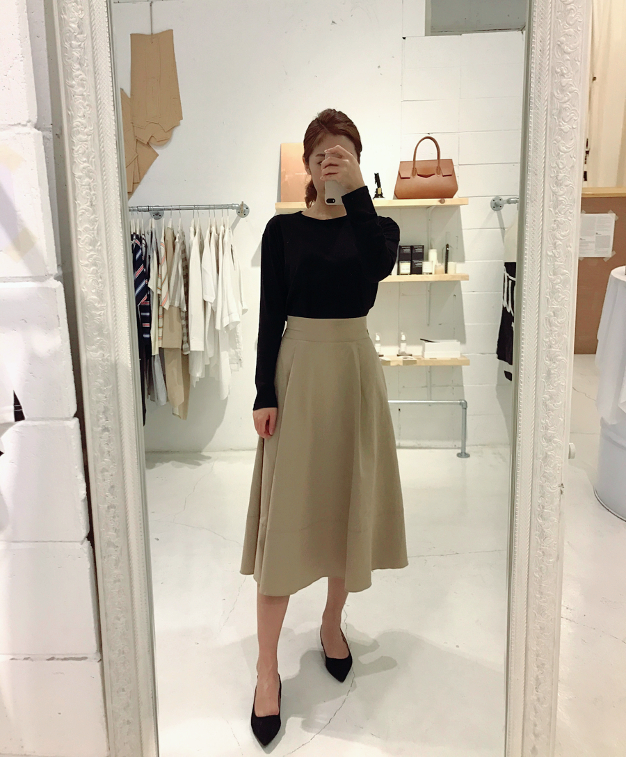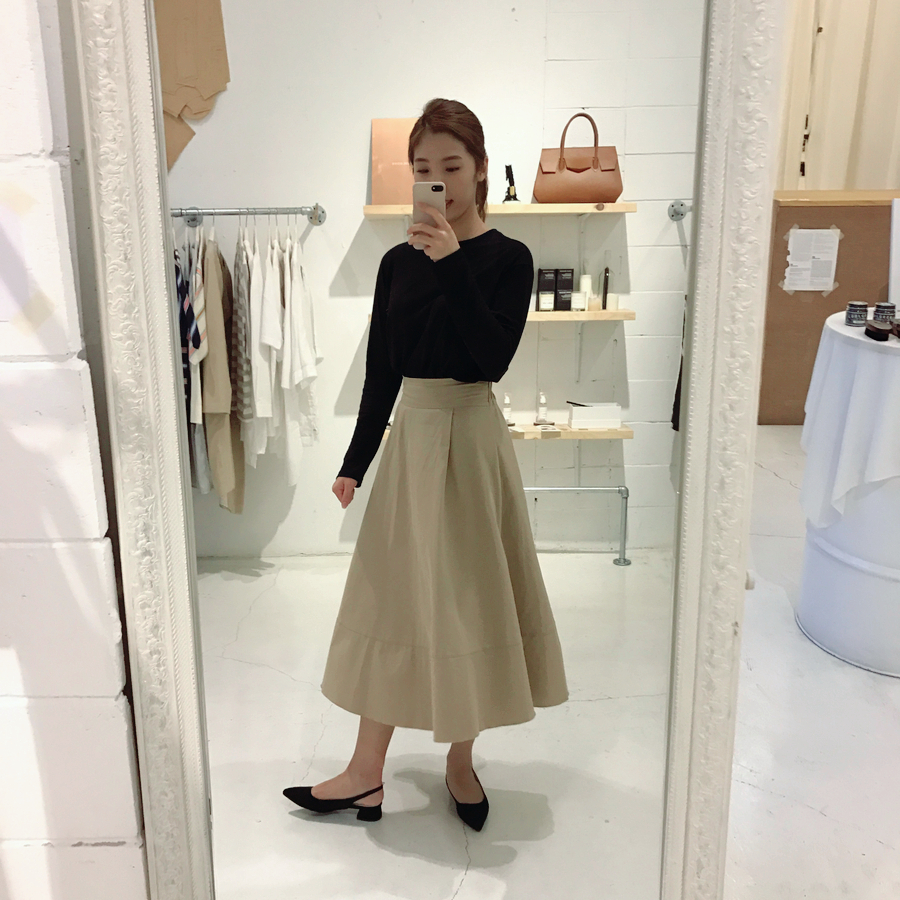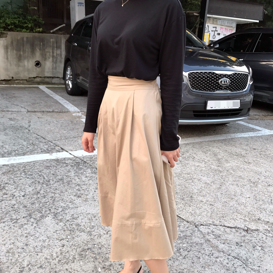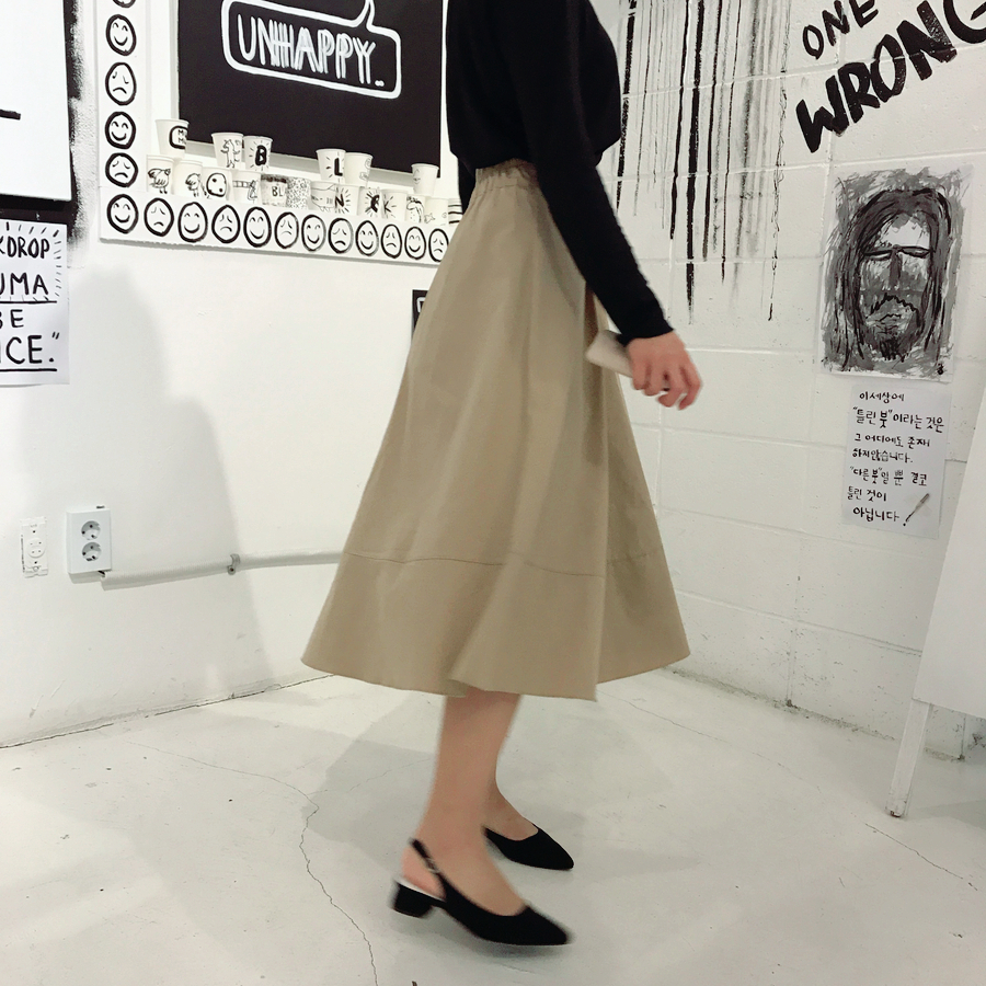 Skirt, long flare natural look Parisian look minimalist classic style beige autumn