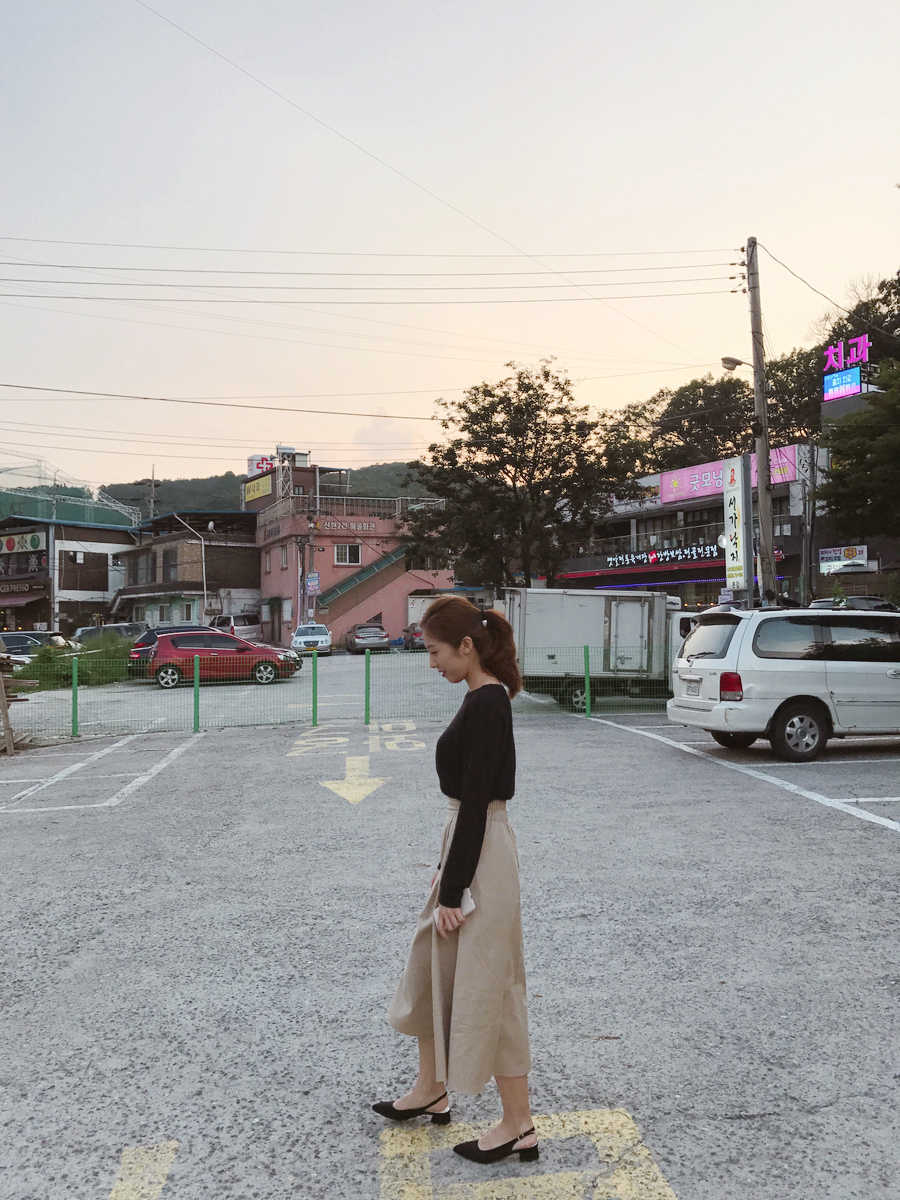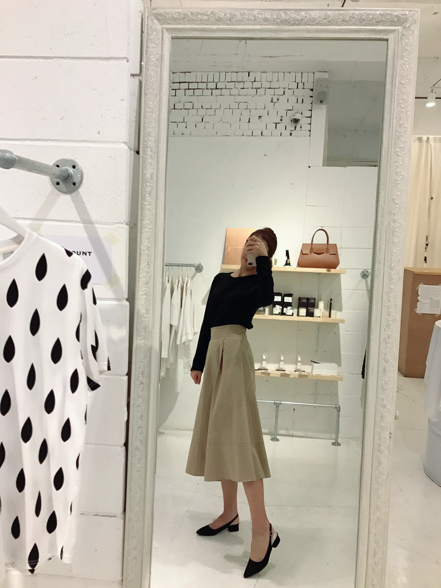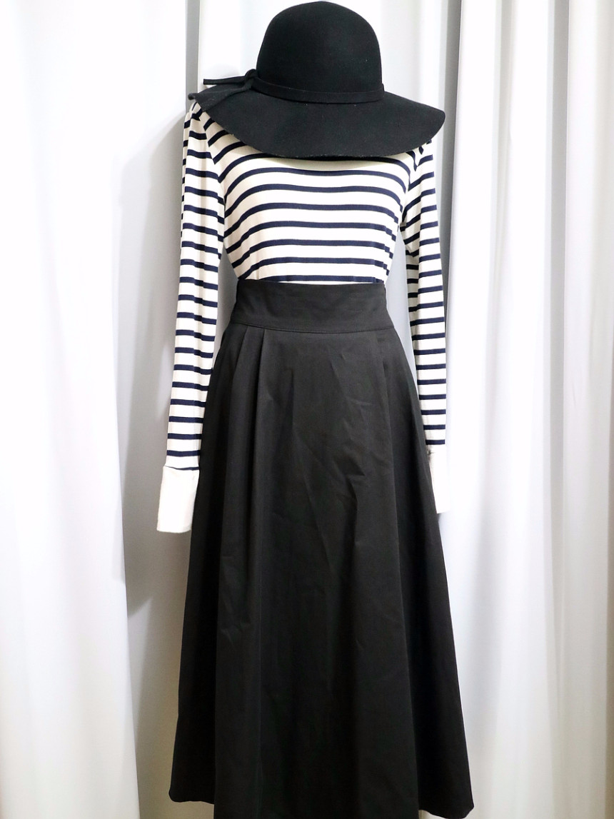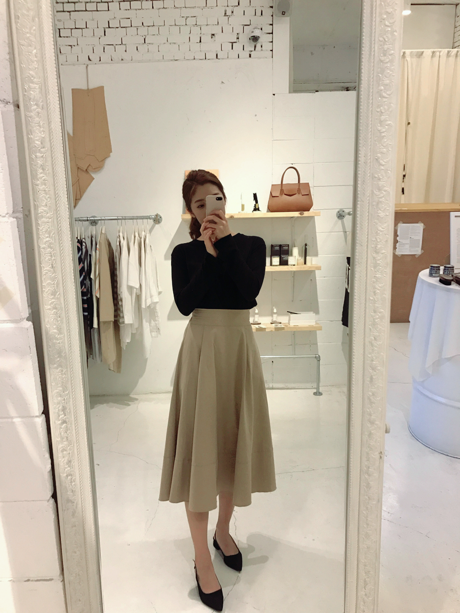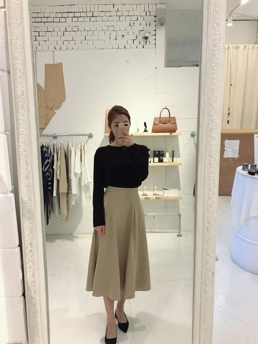 Skirt, long flare natural look Parisian look minimalist classic style beige autumn