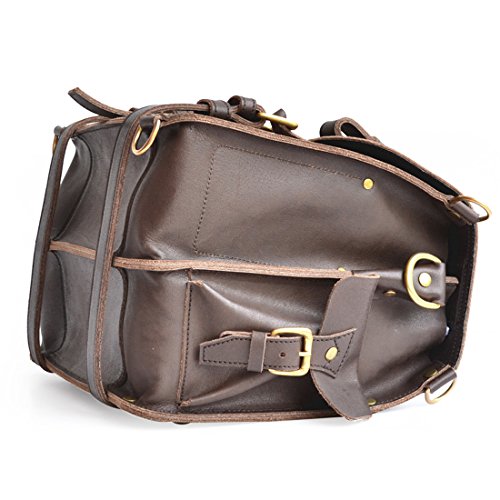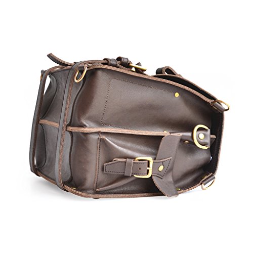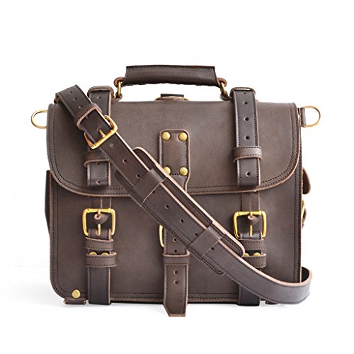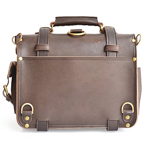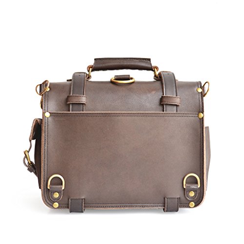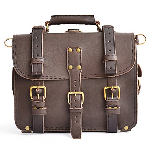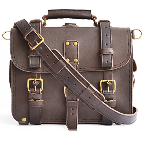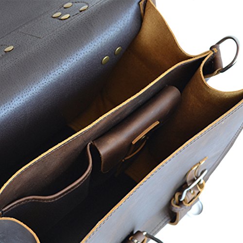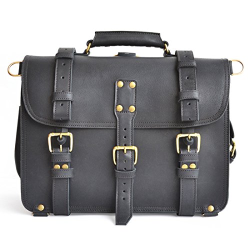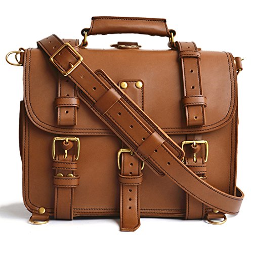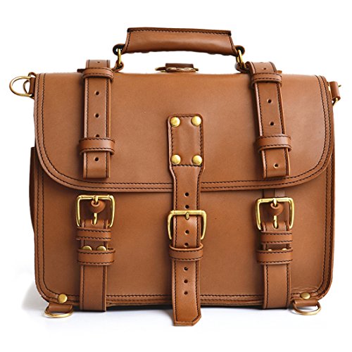 Product Description This handmade bag features a 100% full grain water buffalo leather body and straps that will develop a gorgeous patina as it ages. With a slightly more rotund shape, this double-space leather briefcase also packs double the capacity. The two large compartments inside offer more than enough storage capacity for your laptop, paperwork, and accessories. Inside you'll find several pen holders and sleeves for your passport, Field Notes, or other paperwork. Pockets and sleeves are located on the exterior as well to safely store your smaller gadgets. Designed to carry a heavy load, the belts wrap around the bottom and meet the front flap with durable brass buckles. Plus, all that weight will be easy to carry with the adjustable, padded shoulder strap. And, if you desire, you can quickly transform the briefcase from traditional shoulder carry to a backpack. Details: The Double Space Briefcase is available in 3 sizes: 14" dimensions are: 14"w x 11"h x 9"d and weighs 2.9kg/6.6lb. 16" dimensions are: 16"w x 11"h x 9"d and weighs 3.4kg/7.5lb. 17" dimensions are: 17"w x 12.5"h x 9.5"d and weighs 3.6kg/7.9lbs. USA sourced 100% full grain water buffalo leather. Pigskin lining. Solid brass hardware. Thick industrial strength, marine grade polyester thread is used inside and out. Rivets are placed at all stress points for incredible durability and peace of mind. Adjustable, padded shoulder strap 0