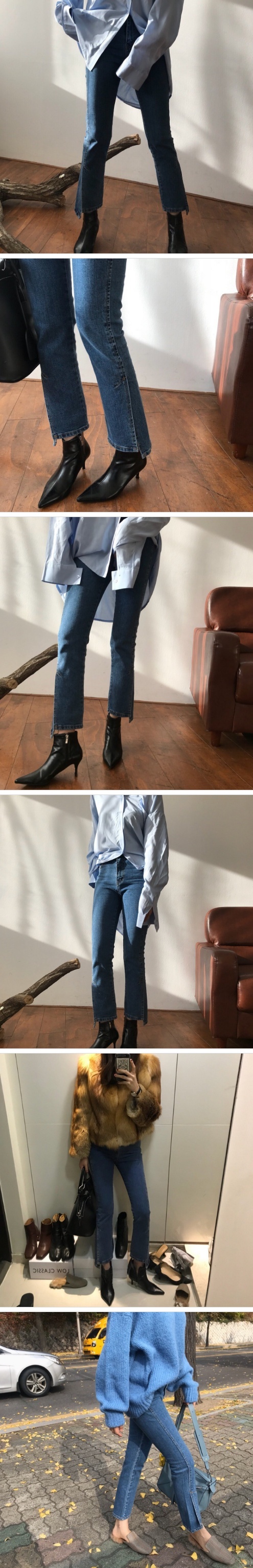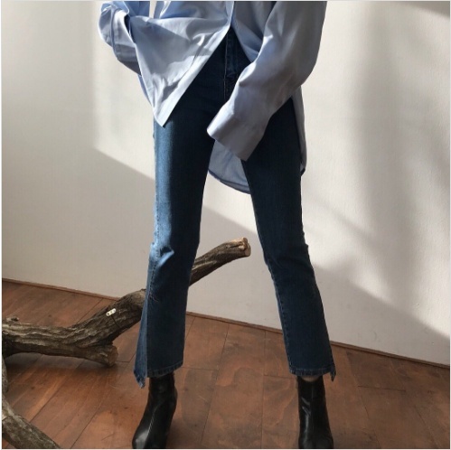Women`s Denim Pants Semi Boots-cut with Slit Accents