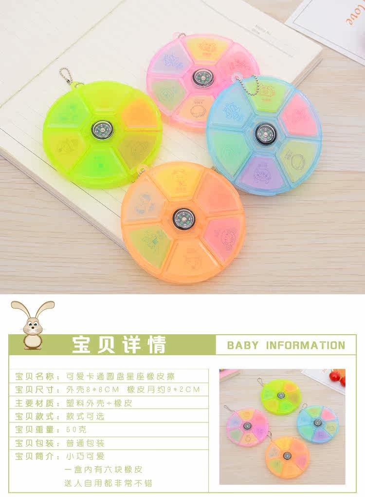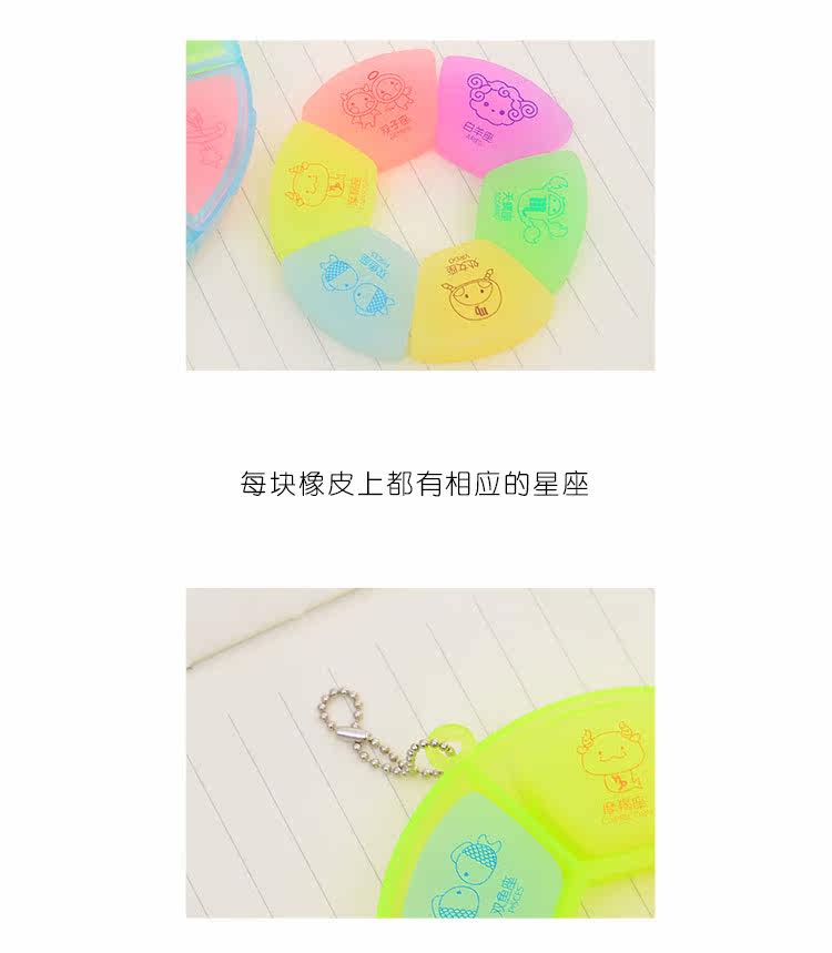 儿童可爱卡通圆盘星座橡皮擦 小学生擦得干净铅笔擦文具用品
