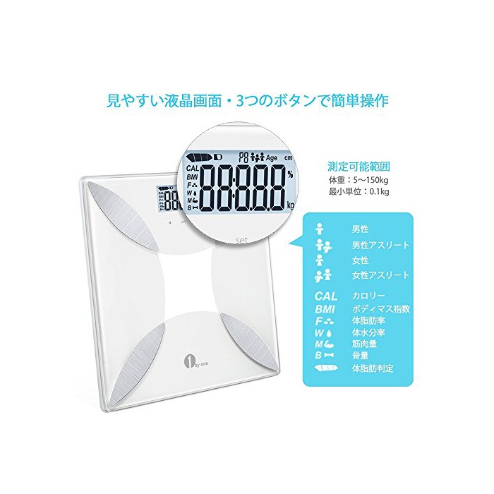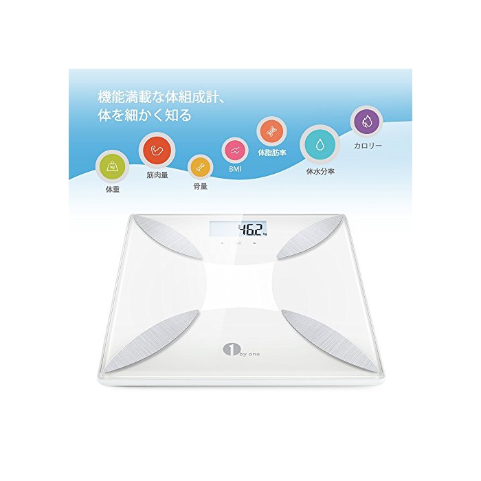 원본상품명: 1byone 組成計 スマト重計 ヘルスメタ 重 / 脂肪率 / 水分率 / 推定骨量 / 筋肉量 / カロリ / BMI測定可能 脂肪計 化ガラス製 簡設定 健康管理用