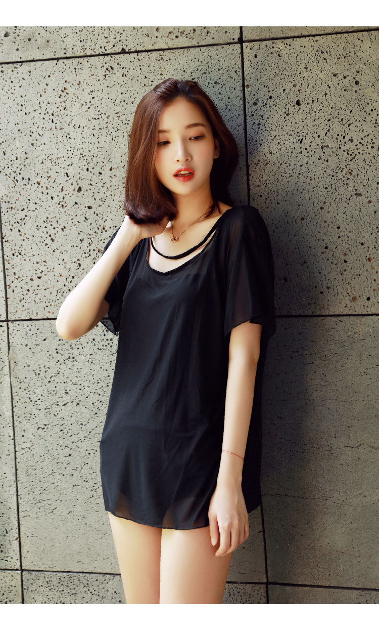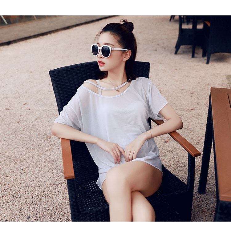シンプルなワンピース水着とチュニックの2点セットです。