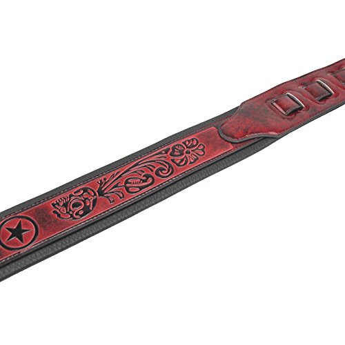 -. Brand : Walker & Williams -. Color : Black -. EAN : 0736024417110 -. Feature : Premium Quality Handmade Strap For Acoustic or Electric Guitar or Bass / Black Cherry Top Welt with Texas Star & Skulls Design / Ultra Comfortable Padded Black Glove Leather Back / Double Reinforced End Caps & Matching Top Stitching / 2.75" Wide and Adjustable From 41"-54" -. Label : Walker & Williams -. Manufacturer : Walker & Williams -. Model : WW-GB-126 -. MPN : WW-GB-126 -. PackageQuantity : 1 -. PartNumber : WW-GB-126 -. ProductGroup : Musical Instruments -. ProductTypeName : INSTRUMENT_PARTS_AND_ACCESSORIES -. Publisher : Walker & Williams -. Studio : Walker & Williams -. Title : Walker & Williams GB-126 Black Cherry Padded Guitar Strap Texas Stars & Skulls -. UPC : 736024417110