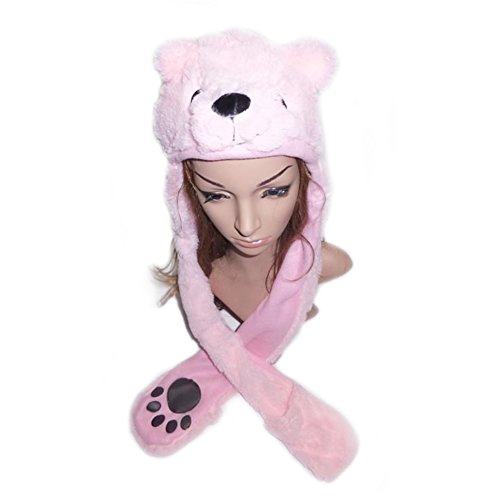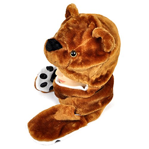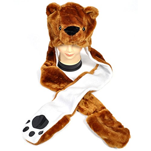-. Feature : Animal hat with ears, pocket mittens, scarf / Material: faux-fur construction with fleece lined interior / Size: one size fits most adults and teens, measurement 37.4 inches in length / Great for animal theme parties, Halloweem, skiing, cold weather and boarding trips / Care: Hand wash and dry flat