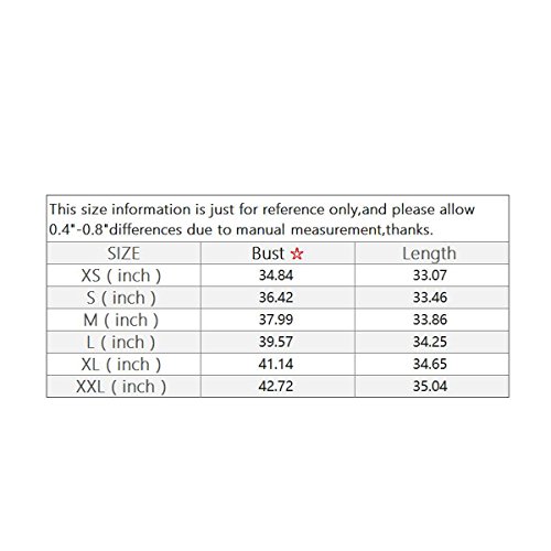 Bust(inch): XS:34.4, S:36.0, M:37.6, L:39.2, XL:40.7, XXL:42.2