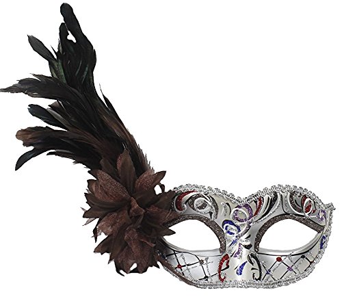 -. Brand : Hagora -. Department : womens -. Feature : High quality product, made with light weight eco-friendly materials. 100% satisfaction guarantee. / Made of Hard Plastic / About 3" High and 6" Wide / Includes Detailed Sparkling Designs and Feathers / One size fits most -. Model : HGM791 -. ProductGroup : Apparel -. ProductTypeName : ADULT_COSTUME -. Title : Hagora, Women's Carnival Queen Copper Trim Black Feathers Shiny Venetian Mask