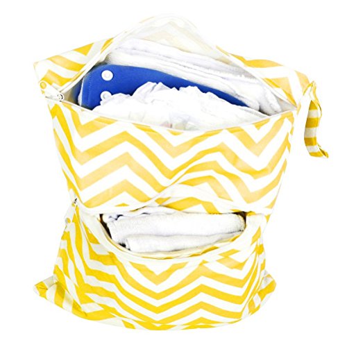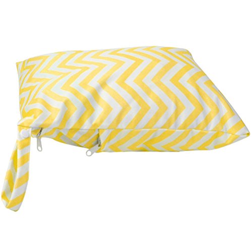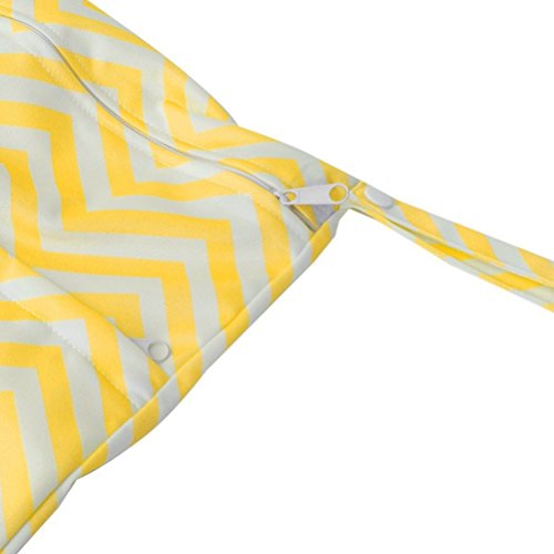 1 * Wave Pattern Washable Reusable Waterproof Zippered Baby Cloth Diaper Nappy Bag Wet Dry Bag Tote with Soft Snap Handle (Yellow)