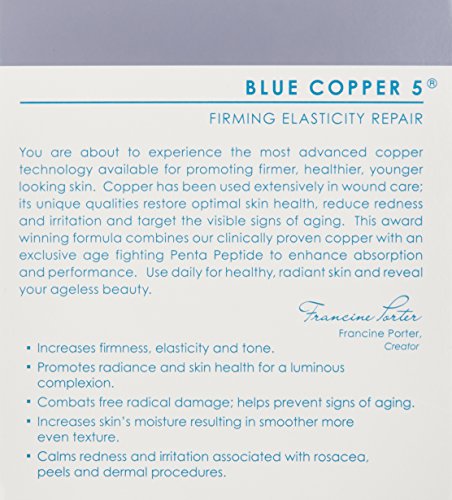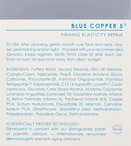 ReleaseDate : 2013-09-24 Studio : Osmotics Cosmeceuticals Publisher : Osmotics Cosmeceuticals Binding : Misc. Product Description Osmotic' advanced research has discovered the next generation in copper technology for promoting firmer, healthier, younger looking skin. This elegant formulation combines the proven benefits of copper with our new anti-aging molecule, the 5-chain pentad peptide. Increases firmness, elasticity and tone.. Visibly smoothest, firms and lifts facial contours. Restores skin health and radiance. Anti-aging formula for all skin types. 0