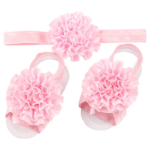 -. Title : Lovinglove Baby Girls Foot Flower Barefoot Sandals Shoes and Headbands Set