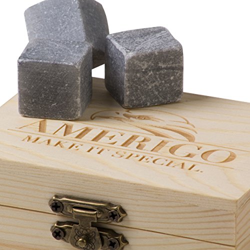 -. Brand : Amerigo -. Color : Grey -. EAN : 0685987320664 -. Feature : ➤ BE UNIQUE, EVEN WHILE CHOOSING A GIFT ~ Do you want to give a gift which will be unique and MEMORABLE for a life time and upgrade your gift to "Top-Shelf"? ~ These elegant whiskey stones by Amerigo will definitely make your present UNFORGETTABLE! / ➤ EASY TO STORE, NO MESS ~ Simple storage comes with a hand crafted WOODEN box and a FREE carrying velvet pouch with the logo embroidered. ~ This extraordinary wooden box provides one more BENEFIT: It is such an awesome DECORATION in every home. / ➤ ENJOY EVERY SINGLE SIP OF YOUR FAVORITE DRINK ~ With soon to be, your set of whiskey rocks every drink stays away from being diluted by ice. ~ If you drink Whiskey (American and Irish producers), Whisky (Canadian, Scottish, Japanese producers), Vodka, Wine, Cocktails etc. ~ YOUR LAST SIP WILL ALWAYS BE AS PERFECT AS THE FIRST. / ➤ NO MATTER YOUR AGE OR YOUR GENDER! YOU WILL ABSOLUTELY LOVE IT! ~ As a gift these high quality Premium Whiskey ice cubes by Amerigo are an ideal option for your husband, wife, fiancé, friends, parents etc. Give them a special gift that is easy to use, and most importantly unforgettable! ~ Or just satisfy yourself! ~ A FEW GREAT GIFT IDEAS: Christmas, Father´s Day, Birthday, Valentines Day, Retirement, Anniversary, College Graduation, Promotion! / ➤ SATISFACTION GUARANTEED ~ We are a small family business and we DO believe in quality of our products. ~ We offer a 90-DAY MONEY BACK GUARANTEE with no Questions asked. ~ And if that´s not enough. ~ You get a 101-year REPLACEMENT WARRANTY just FOR YOU. -. ProductGroup : Kitchen -. ProductTypeName : KITCHEN -. Title : Amerigo Premium Whiskey Stones - Set of 9 Chilling Whiskey Rocks - Give Your Drinking a New Meaning - Packaged in an Exclusive Wooden Gift Box - Free Velvet Pouch Included -. UPC : 685987320664