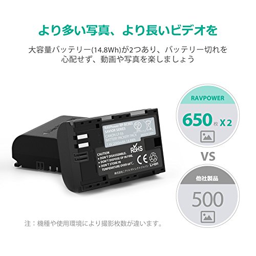 -. Title : バッテリーパック RAVPower LP-E6 LP-E6N 互換バッテリー 2個 + 充電器 セット ( 大容量 2000mAh USB 急速充電 ) EOS 5D Mark IV 、 EOS 80D など対応 RP-BC003
