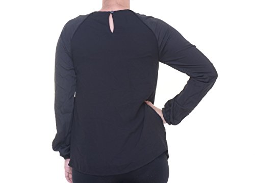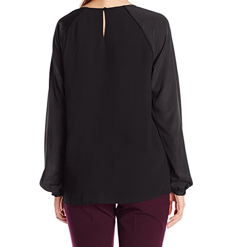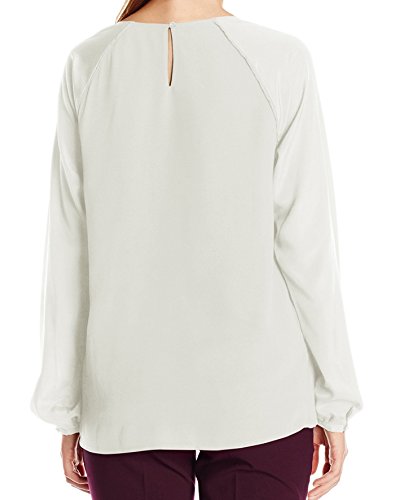 Product DescriptionLong sleeved chiffon crew-neck blouse with pleats around bodice0