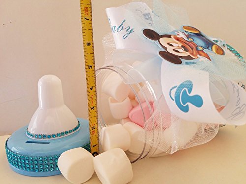 Studio : Product789 Publisher : Product789 Binding : Baby Product Product Description This is the Perfect Baby Mickey Mouse Centerpiece for your baby shower. Make This Your Special Gift for your guest to keep has a souvenir the bottle fits chocolates, marshmallows , candies, gummy bears, mints, coins, you name it. This piggy bank is fillable and has a little coin hole in the cap of the bottle to put coins inside. Large Jumbo Size: 12 1/2" inches tall x 5 1/2" inches Wide. Each One Of Them Is Handcraft And Made of Durable Plastic. 0
