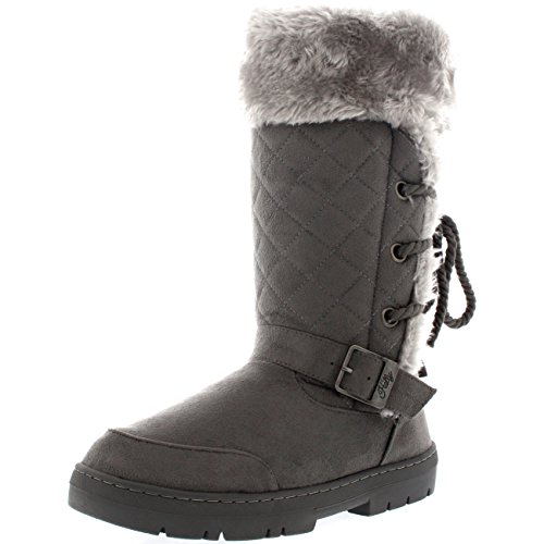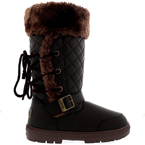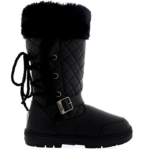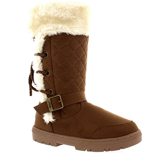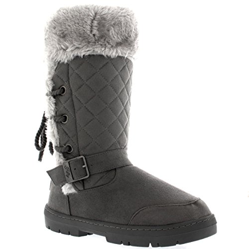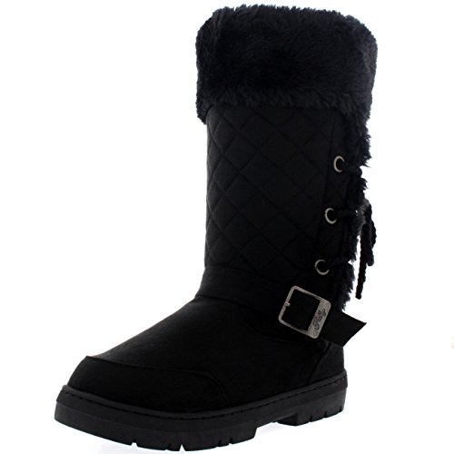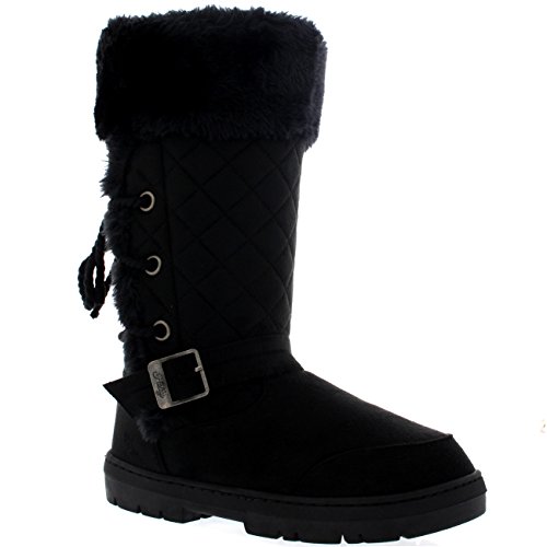 Binding : Apparel Product Description This tall boot features one fixed position buckle on each boot, quilted upper and a roap inspired lace back. Thick lined throughout the boot which is also featured along the top of the boot. The outsole is light, flexible and durable with a deep tread ideal for cold winter days. This boot will provide ultimate comfort and warmth throughout the autumn and winter seasons. 0